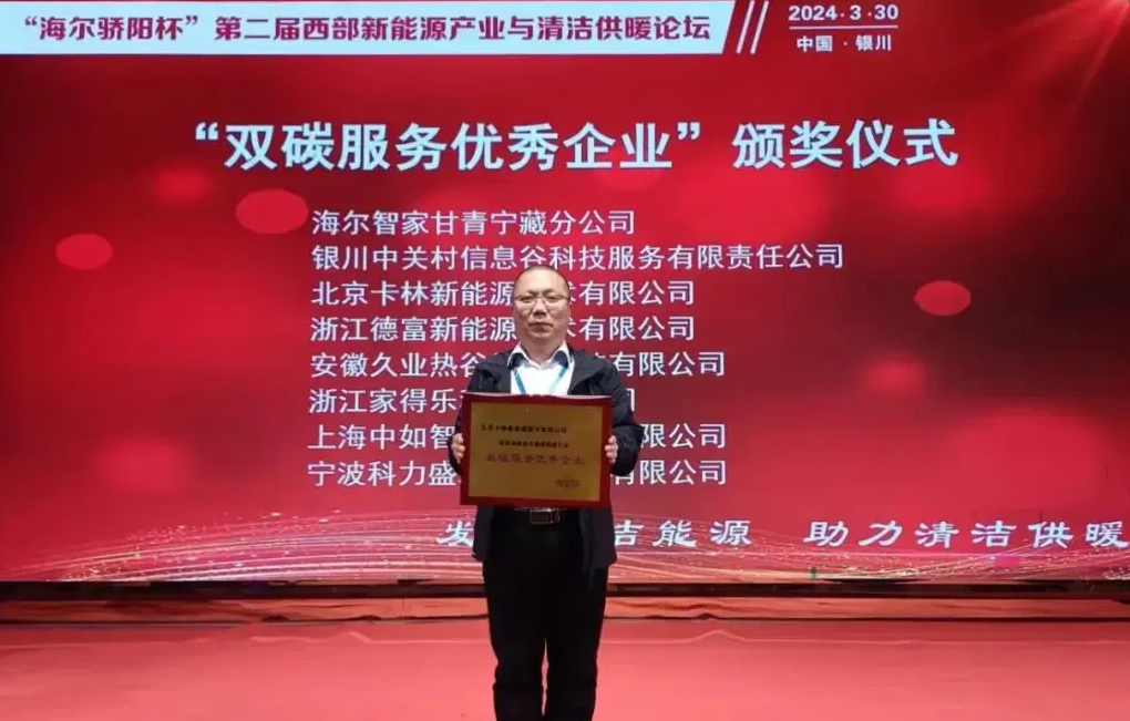 北京K8凯发(中国)新能源技术有限公司有幸在本次的论坛中荣获“双碳服务优秀企业”荣誉,感谢组委会专家领导对K8凯发(中国)的高度认可,这份荣誉对我们来说,既是鼓励,更是不断前进的动力!在双碳政策背景下,践行绿色理念和节能降碳,大力推广清洁能源技术应用,共建可持续开展循环经济体系,K8凯发(中国)义不容辞!